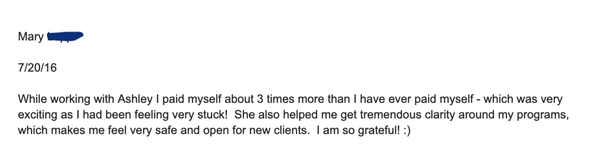 "I’ll say what so many of her clients are saying- working with Ashley was truly the best decision of my life. I believe that things come into your life when you most need them, yet it’s a pity that I didn’t decide to work with Ashley earlier.